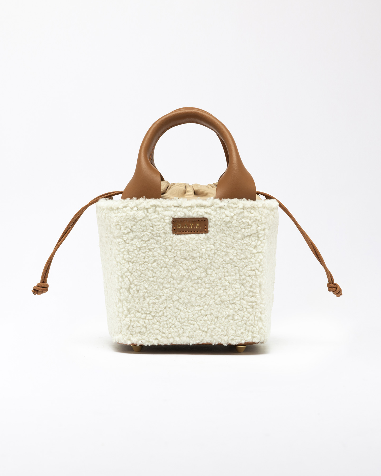 Sac à main de fabrication italienne en tissu teddy blanc doux.