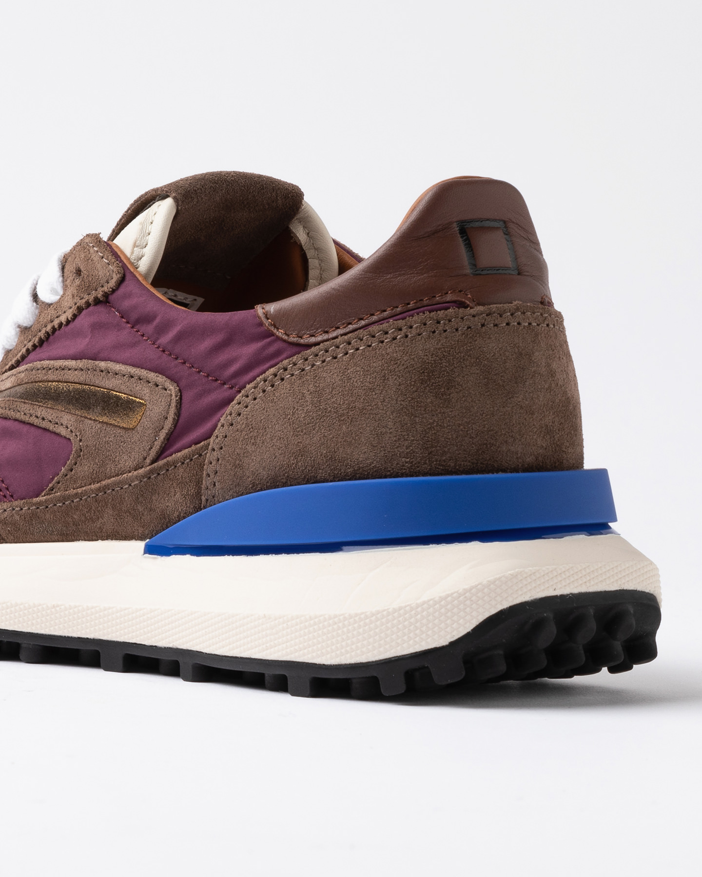 Le logo carre' est brode' sur le petit talon en cuir marron.