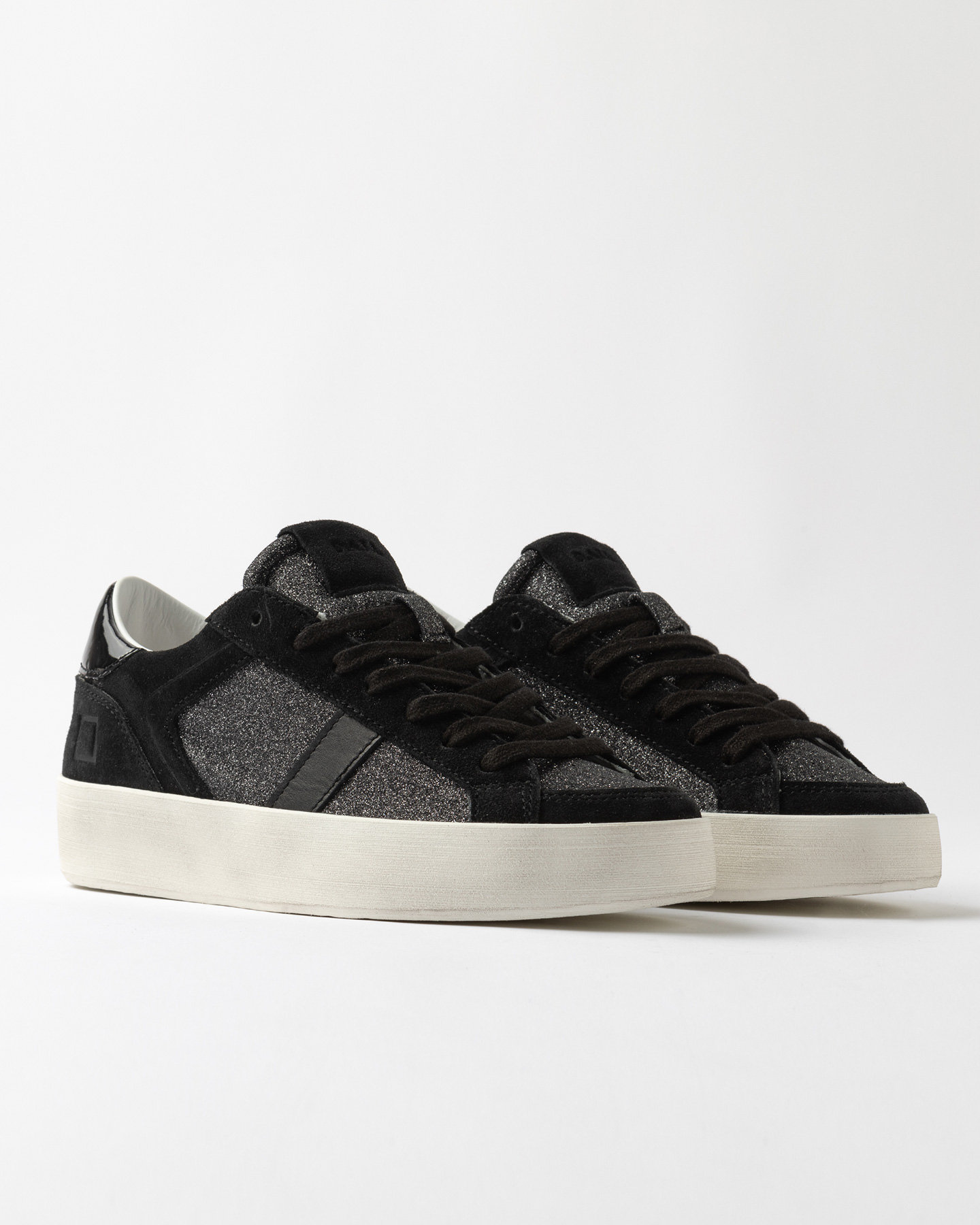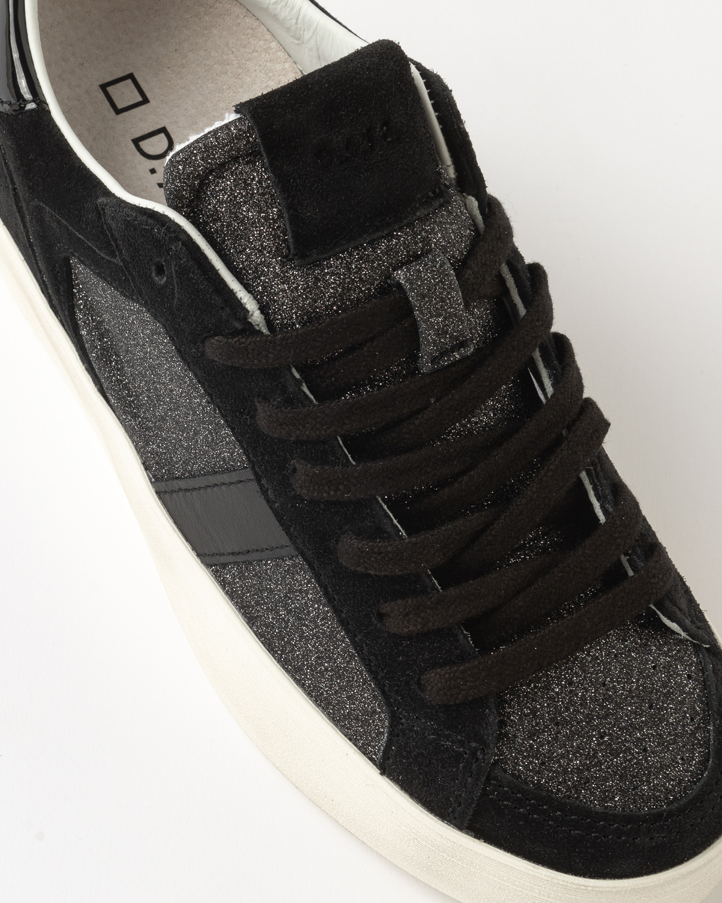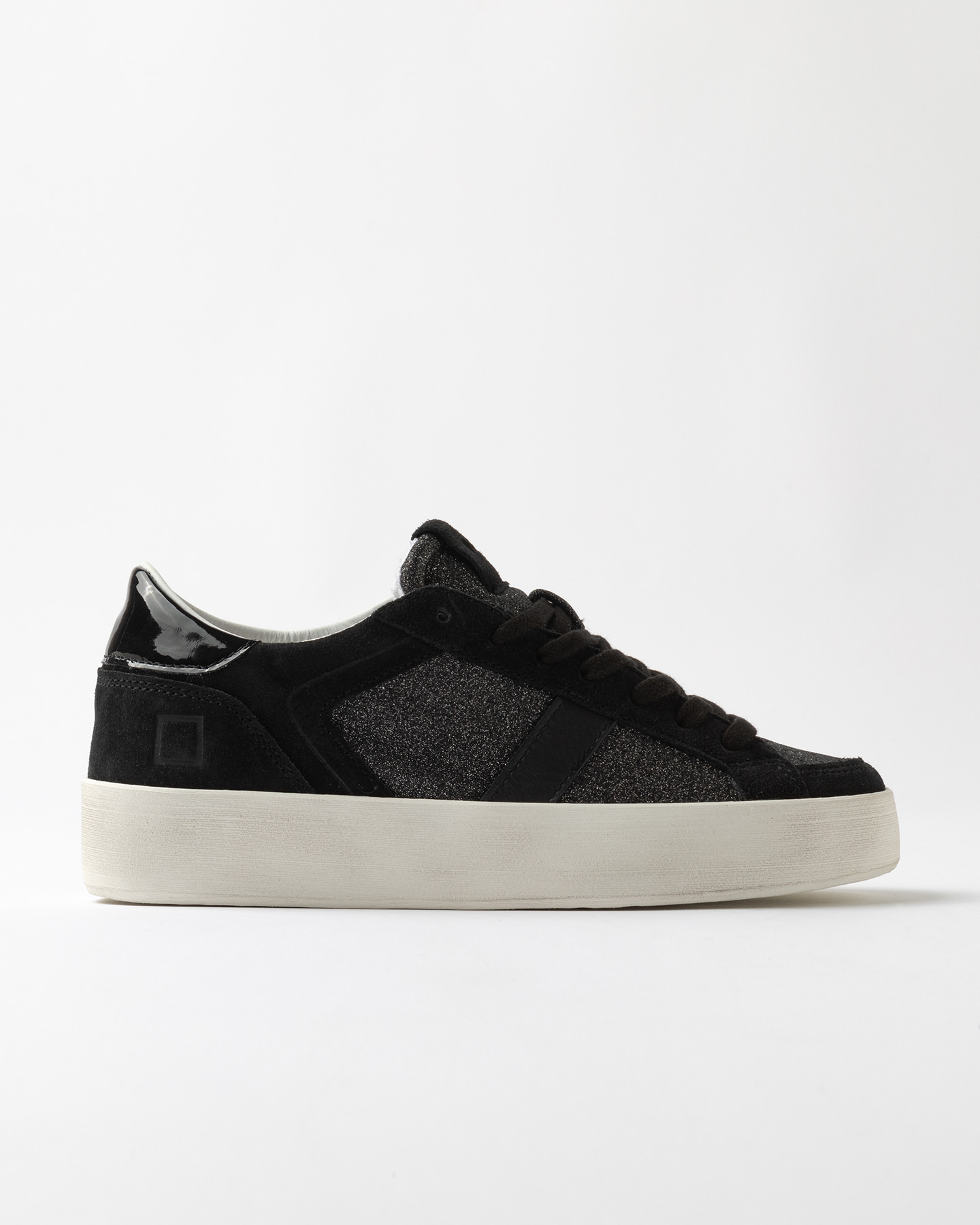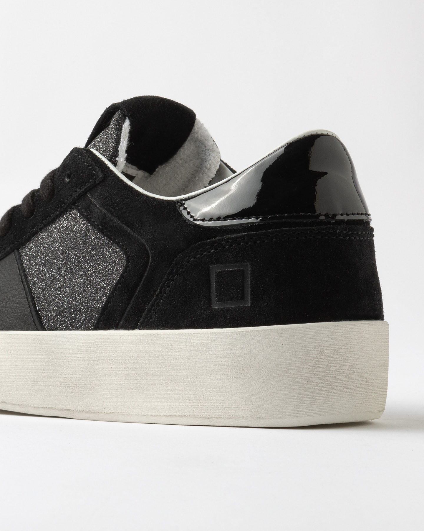 Languette en paillettes en nuance et patch en daim avec imprime' l'ecriture D.A.T.E.