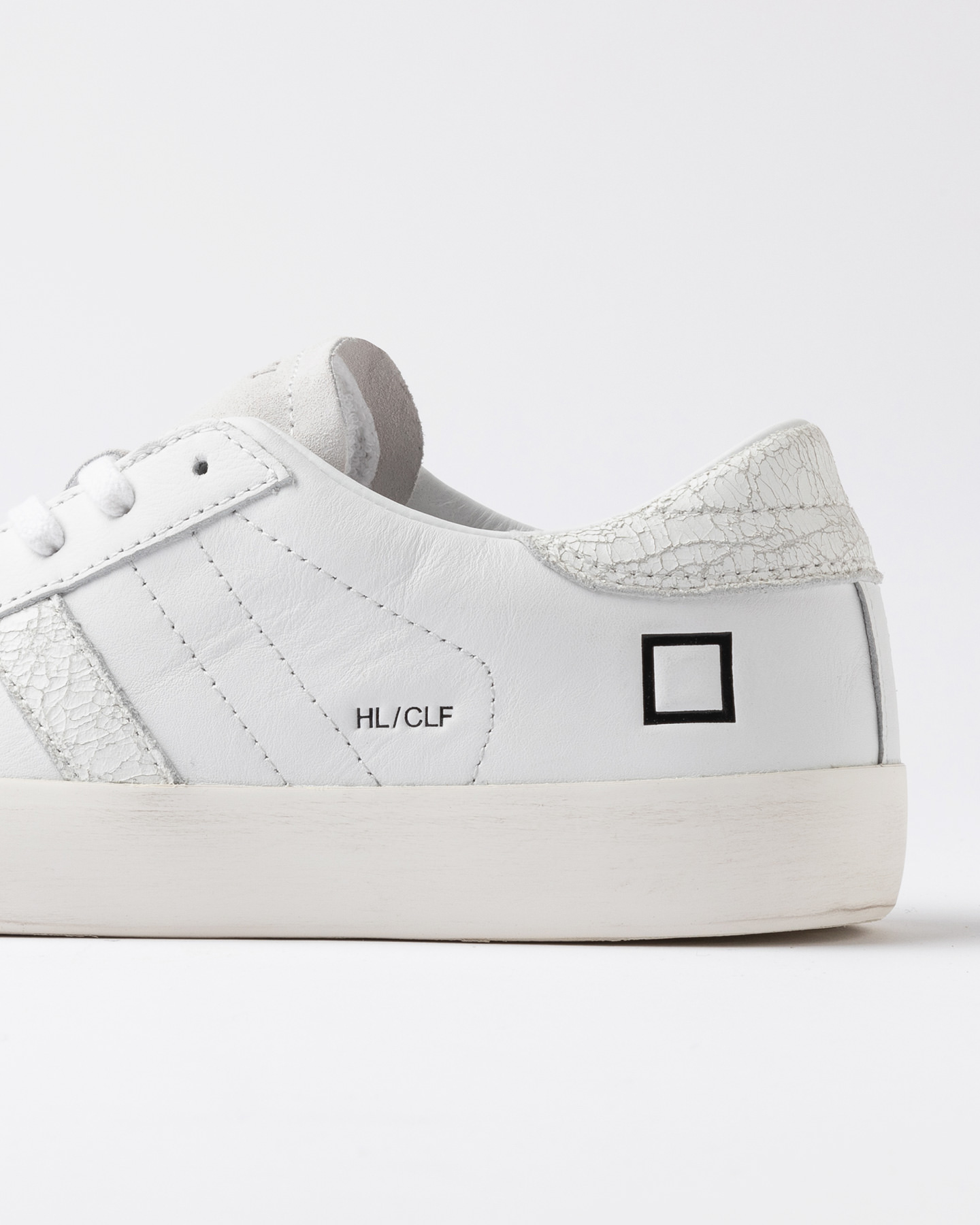 Bande laterale en cuir craquelé blanc.