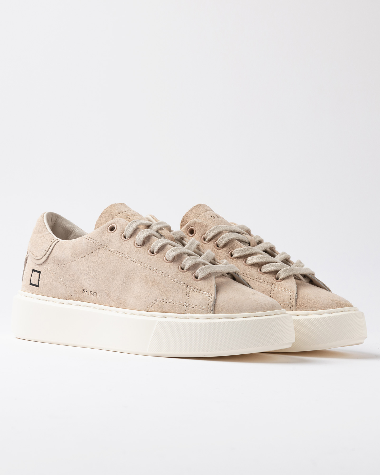 Le lettrage D.A.T.E. est estampillé sur la languette en daim ton sur ton.