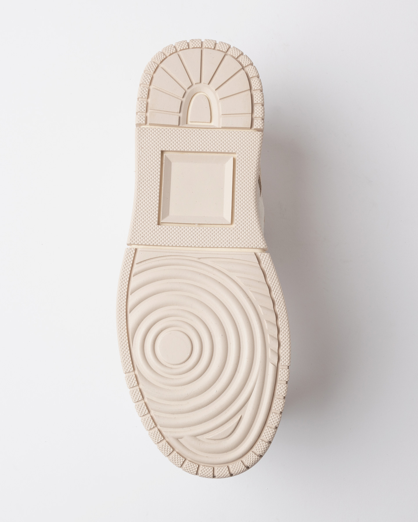 Basket haute en cuir blanc avec surpositions en daim beige.