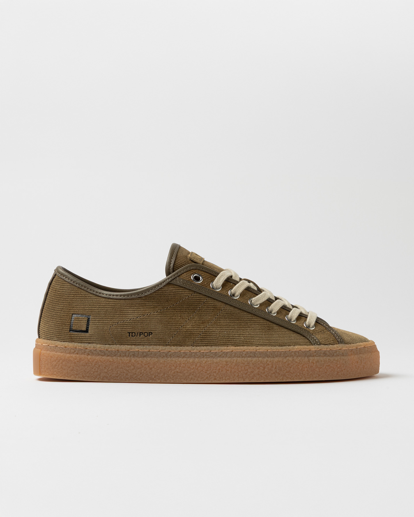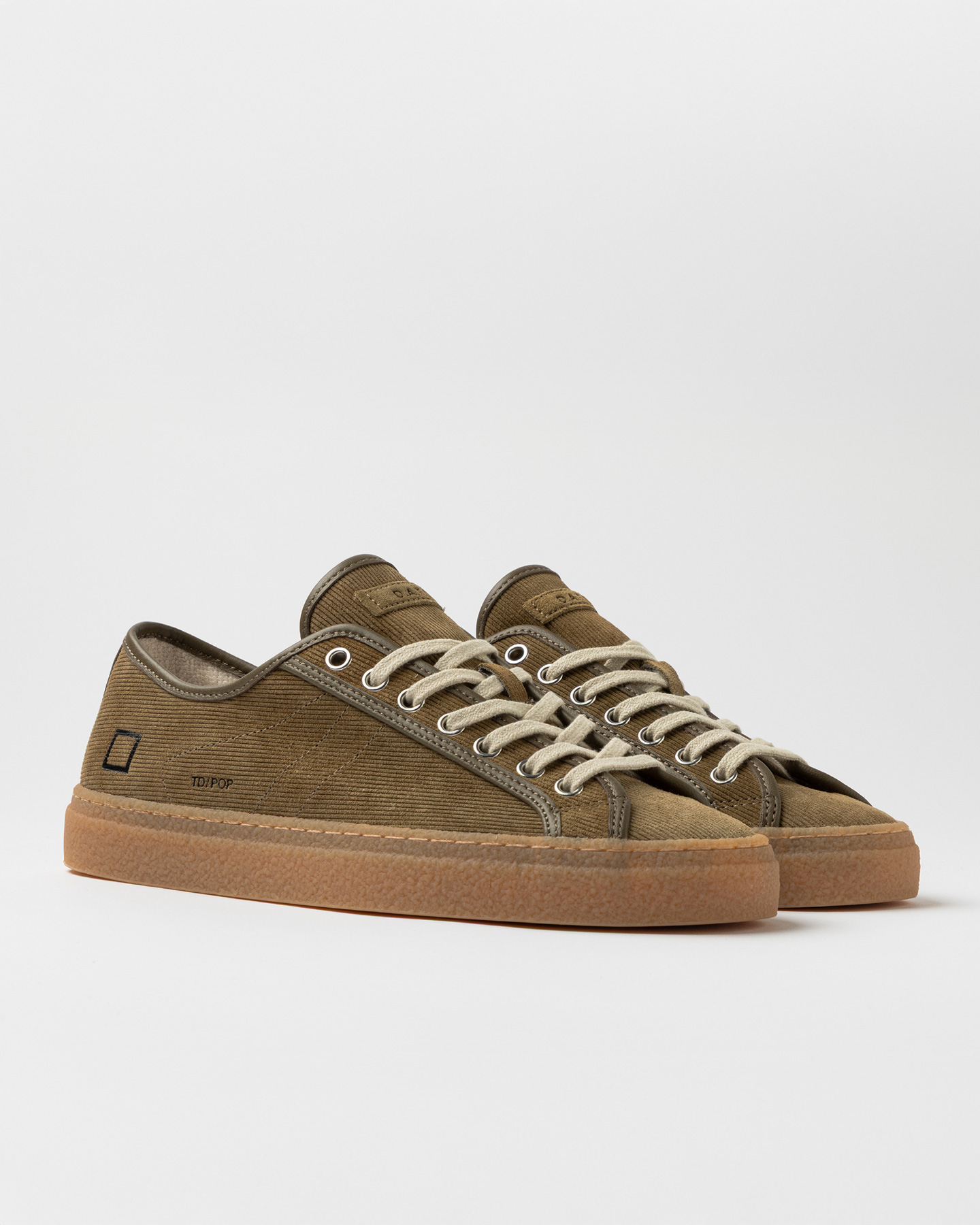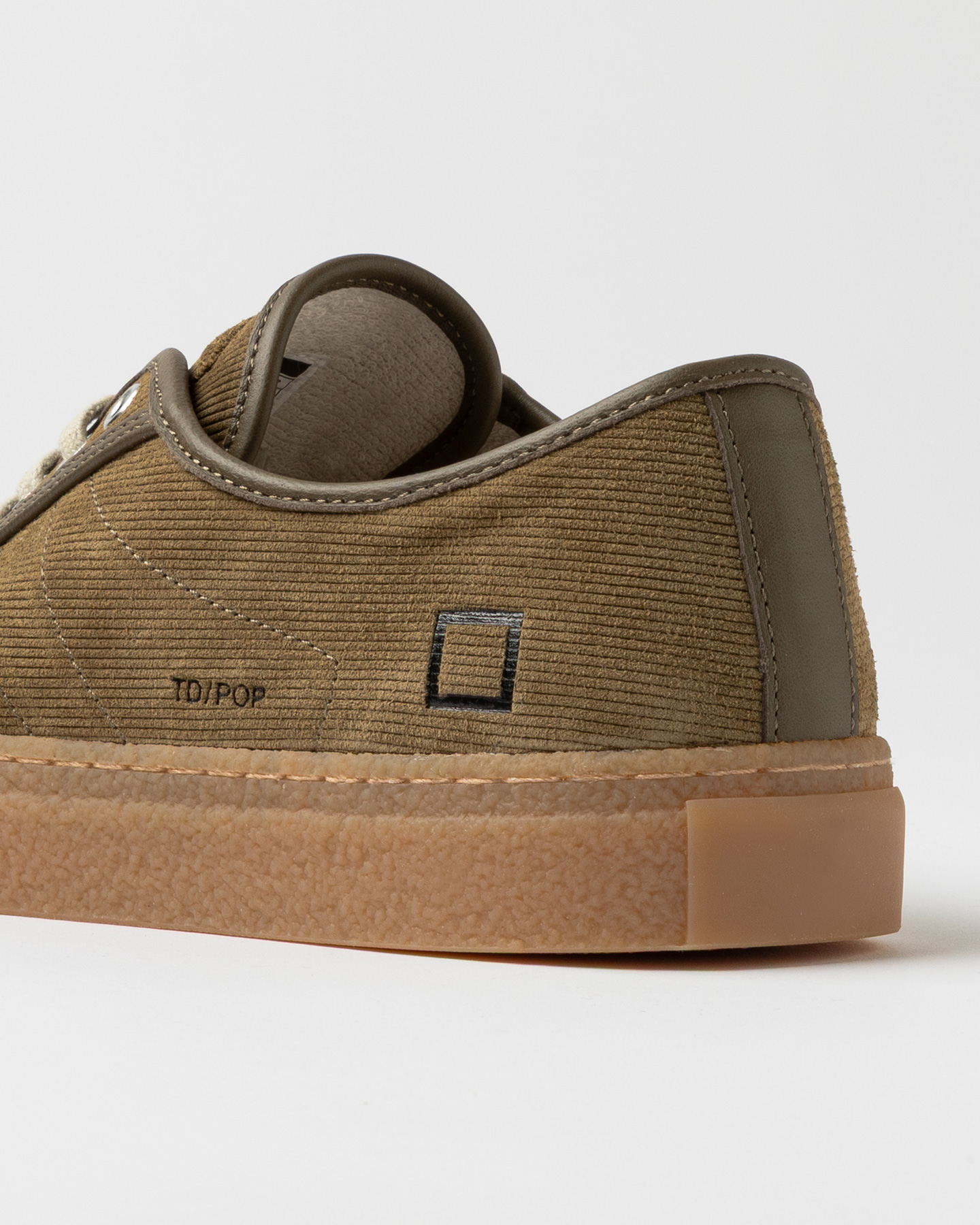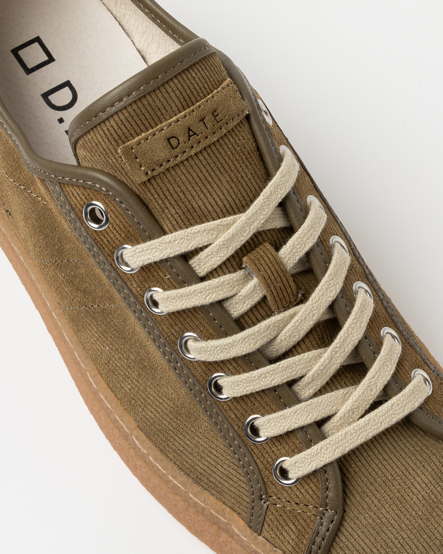 Basket baisse en daim a cotes vert militaire avec profils en nuance.