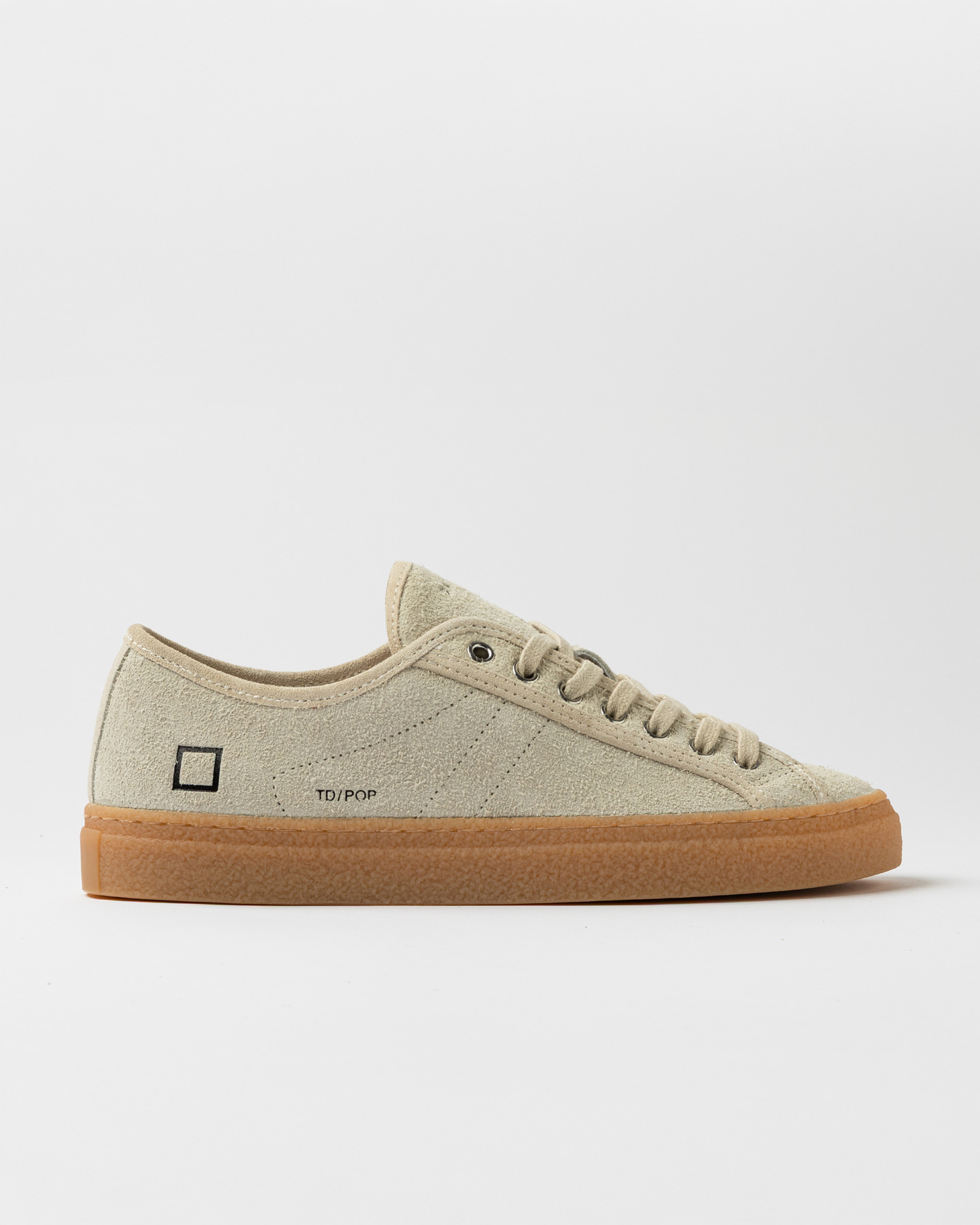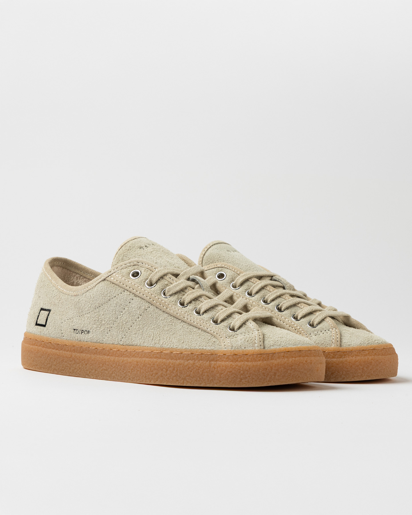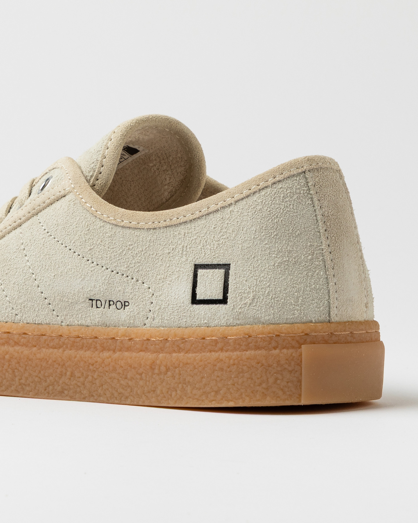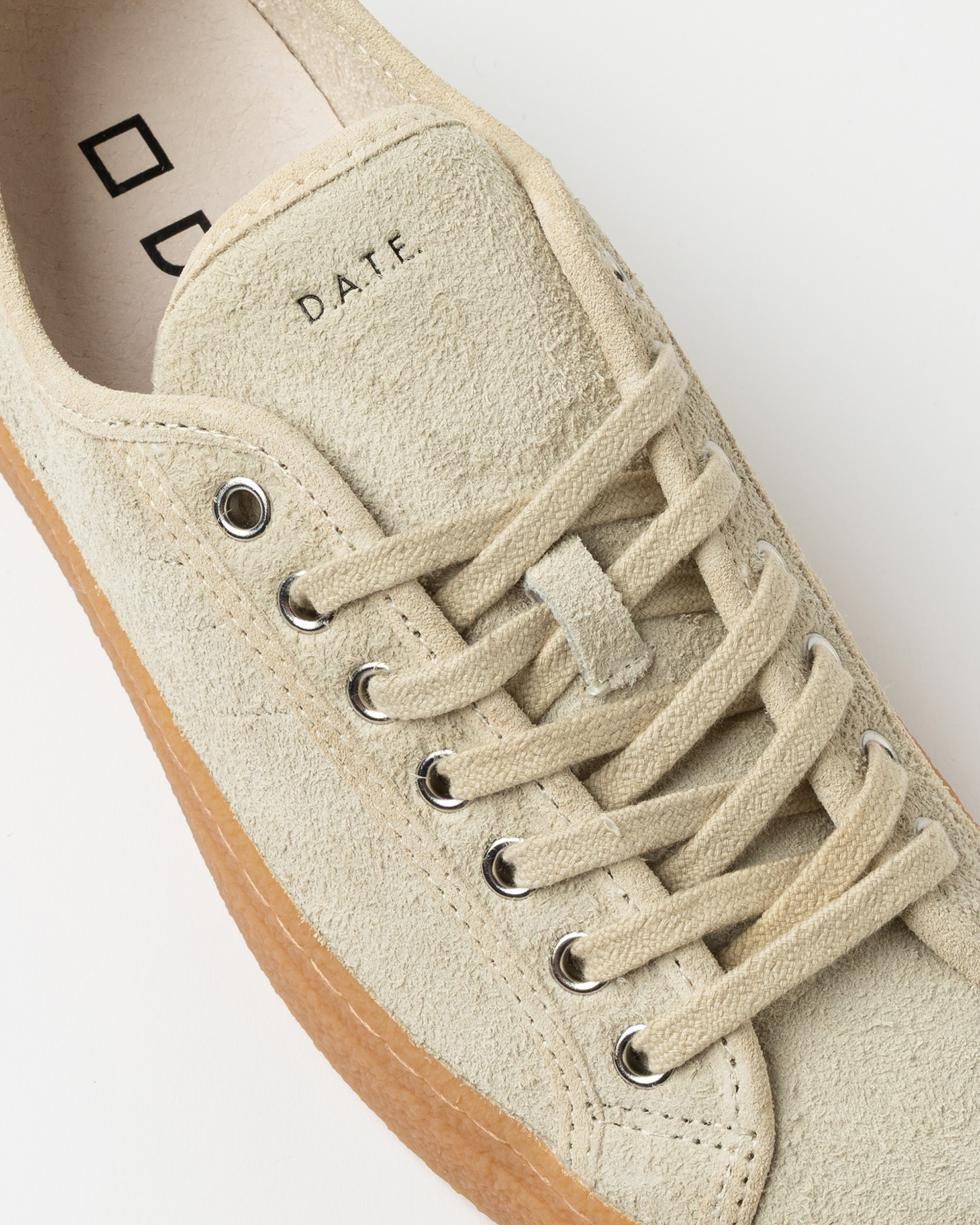 Basket baisse en daim effet hairy beige avec profils ton sur ton.