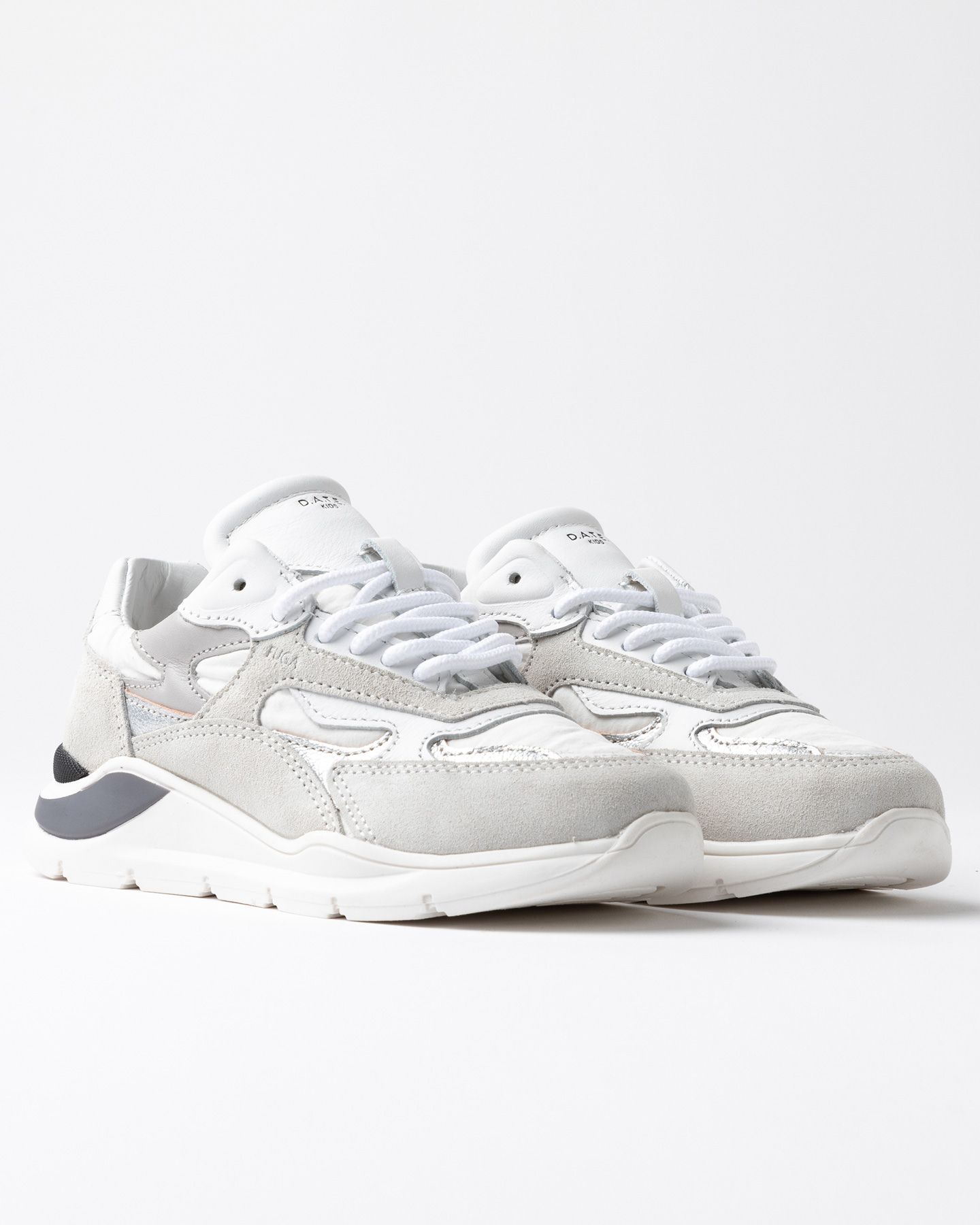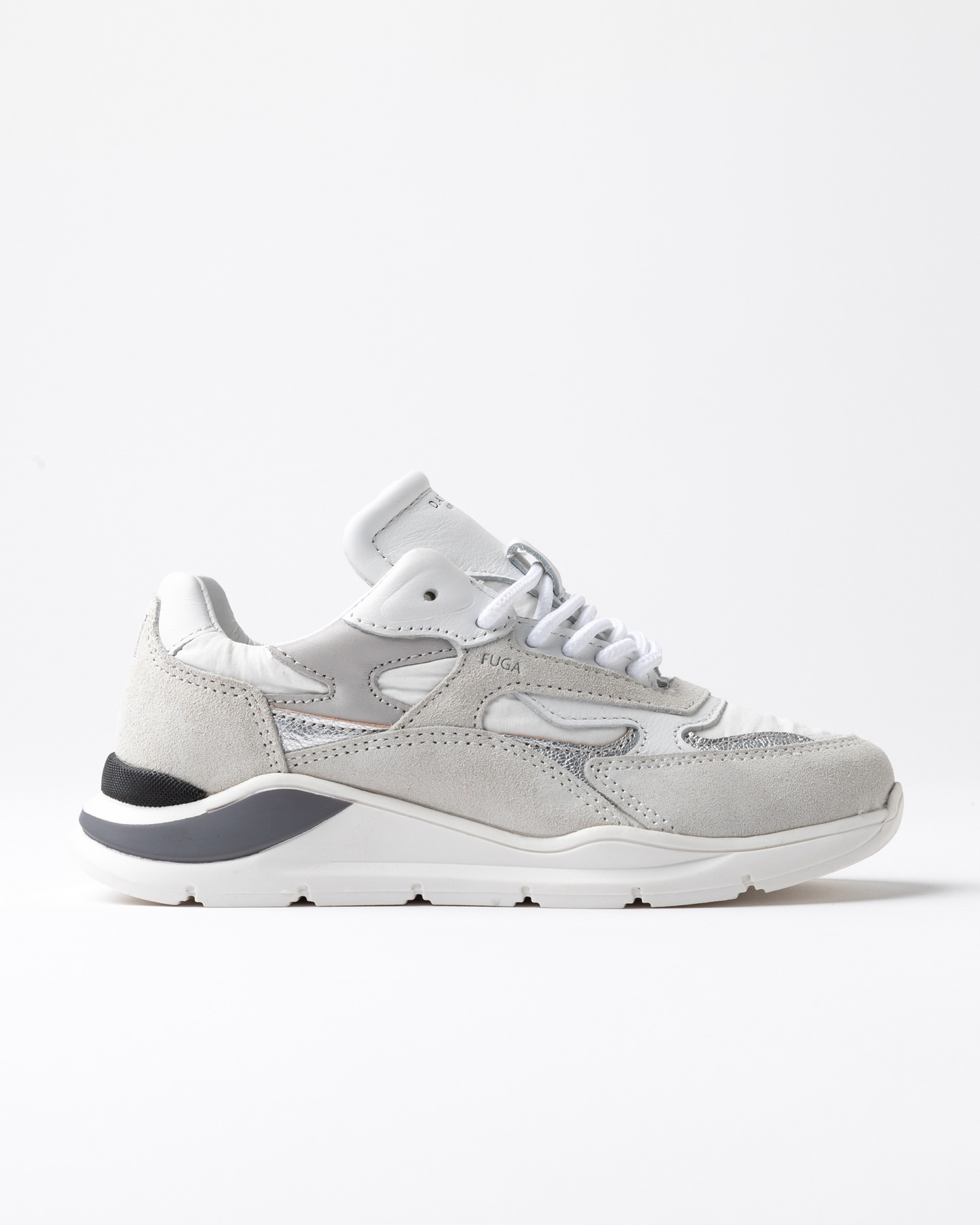 Running basket en nylon blanc avec inserts en daim en nuance.