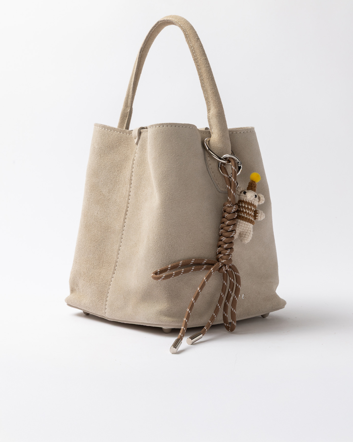 Breloque amovible avec détail tressé et animal au crochet.