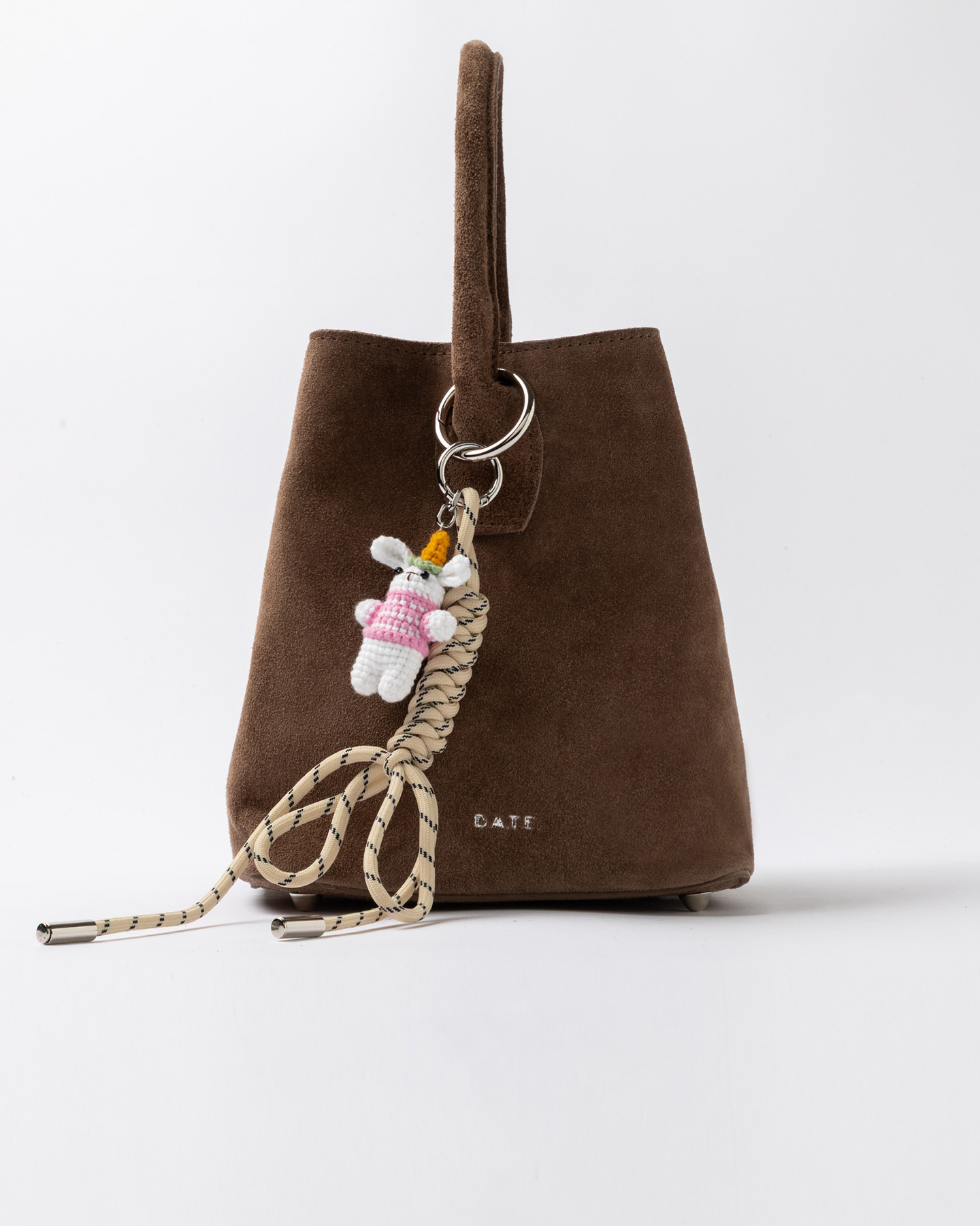 Charm amovible avec détail tressé et petit animal au crochet.