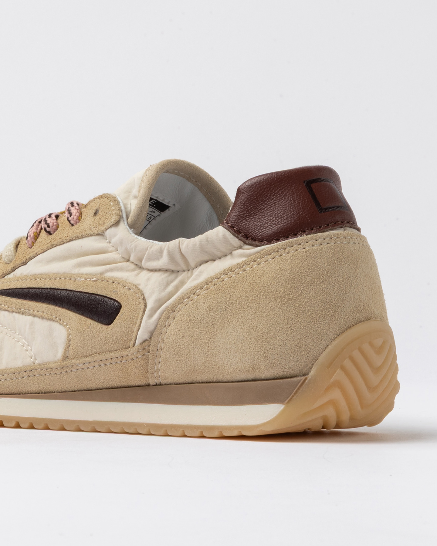 Le logo carre' D.A.T.E. est imprime' sur le petit talon en cuir marrone.
