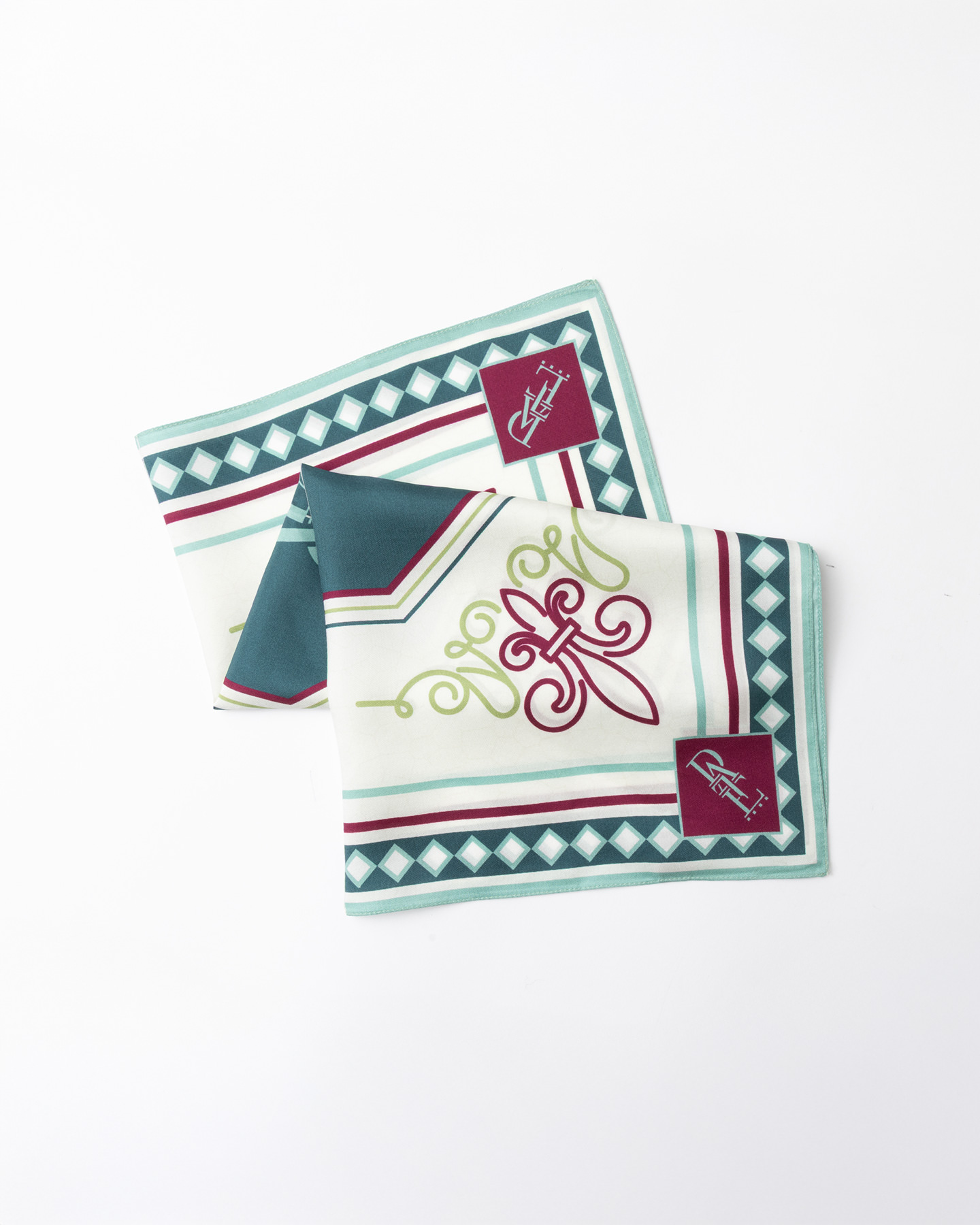 Foulard in pura seta con motivo geometrico, ispirato e reinterpretato dalle tradizionali cementine fiorentine.