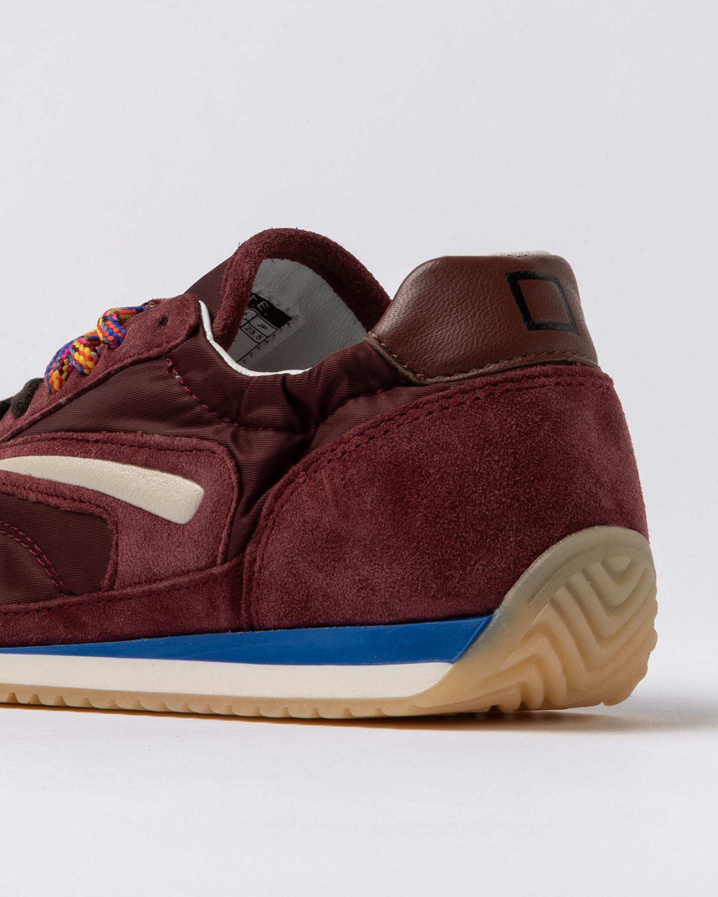 Il logo quadrato D.A.T.E. è impresso nel talloncino in pelle di colore marrone.