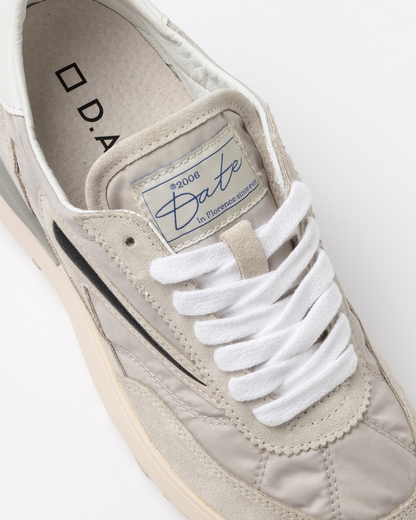 • La label con scritta D.A.T.E. è cucita sulla linguetta in nylon.