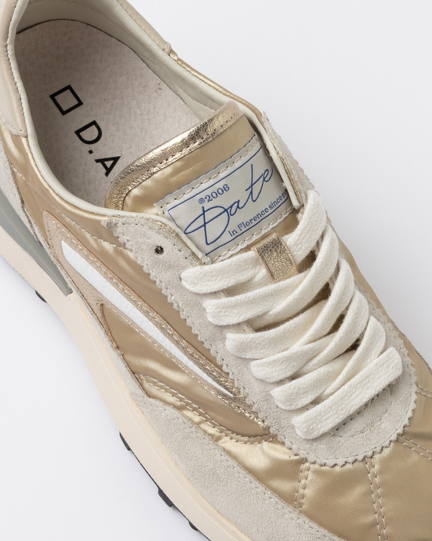 La label con scritta D.A.T.E. è cucita sulla linguetta in nylon.