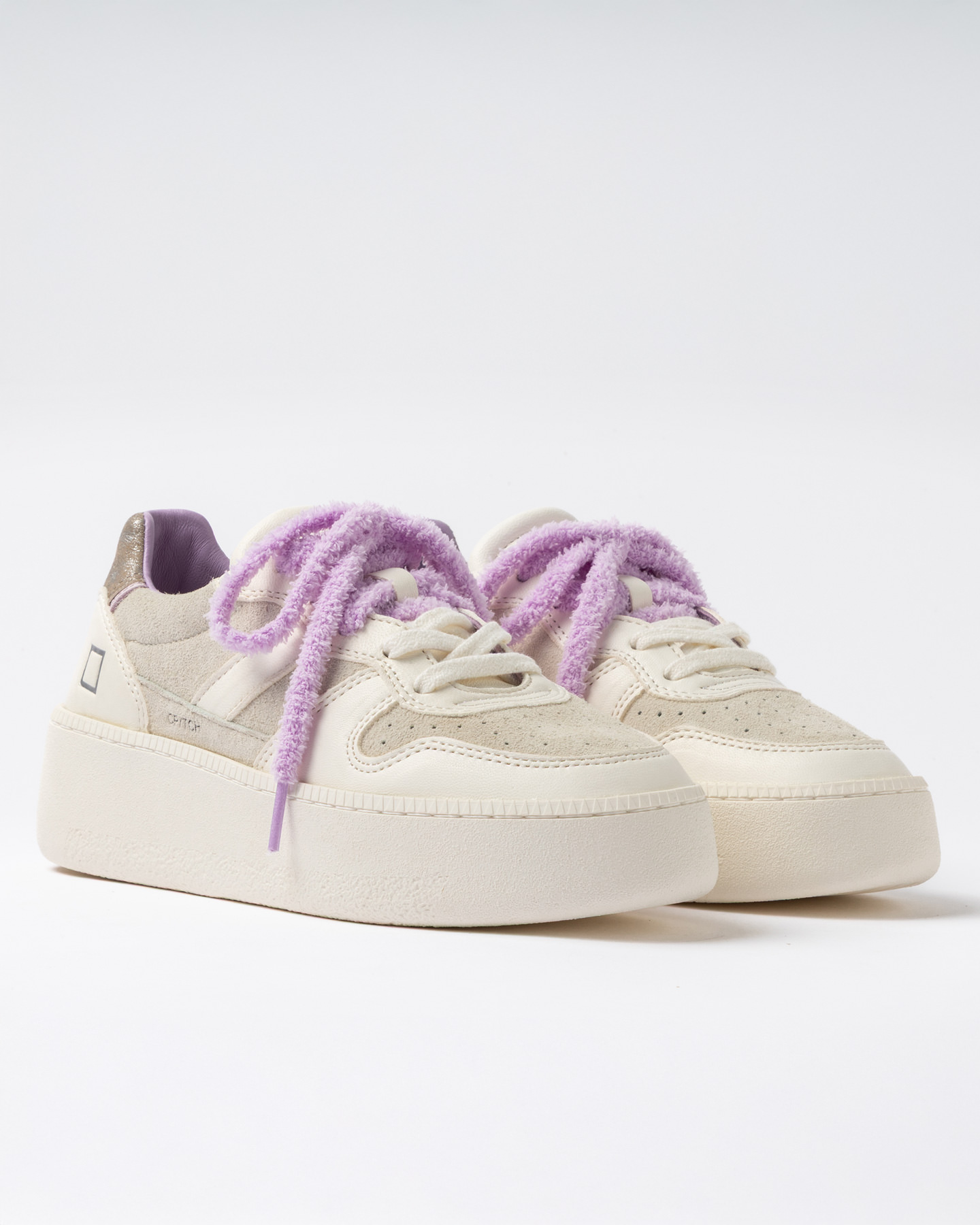 Sneakers platform in camoscio avorio e nappa bianco panna.