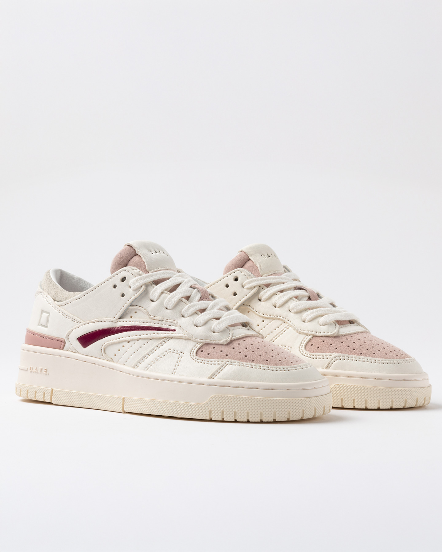 Sneakers bassa in nappa bianco panna e camoscio rosa.