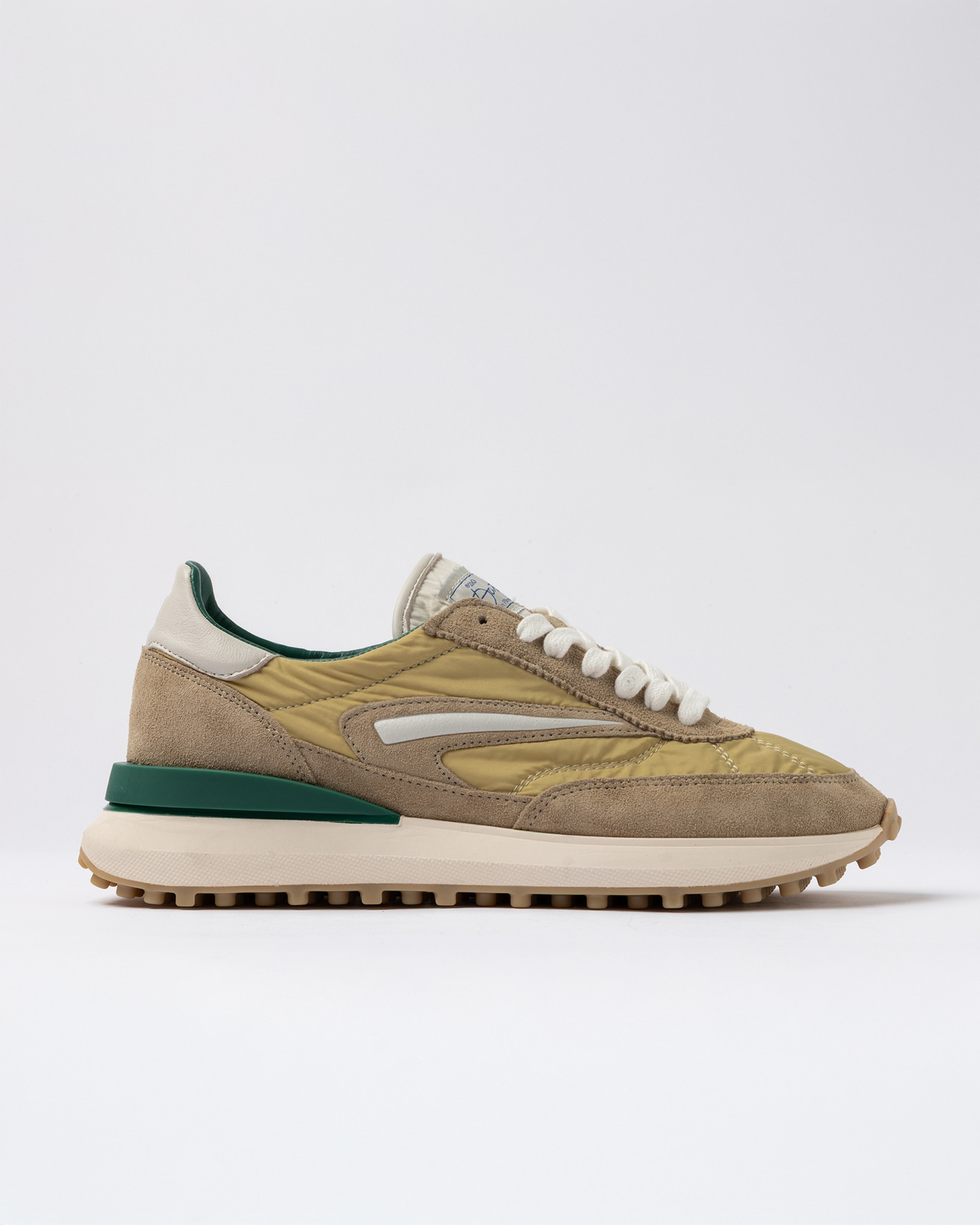 Running sneakers in nylon beige con dettagli in suede tono su tono.
