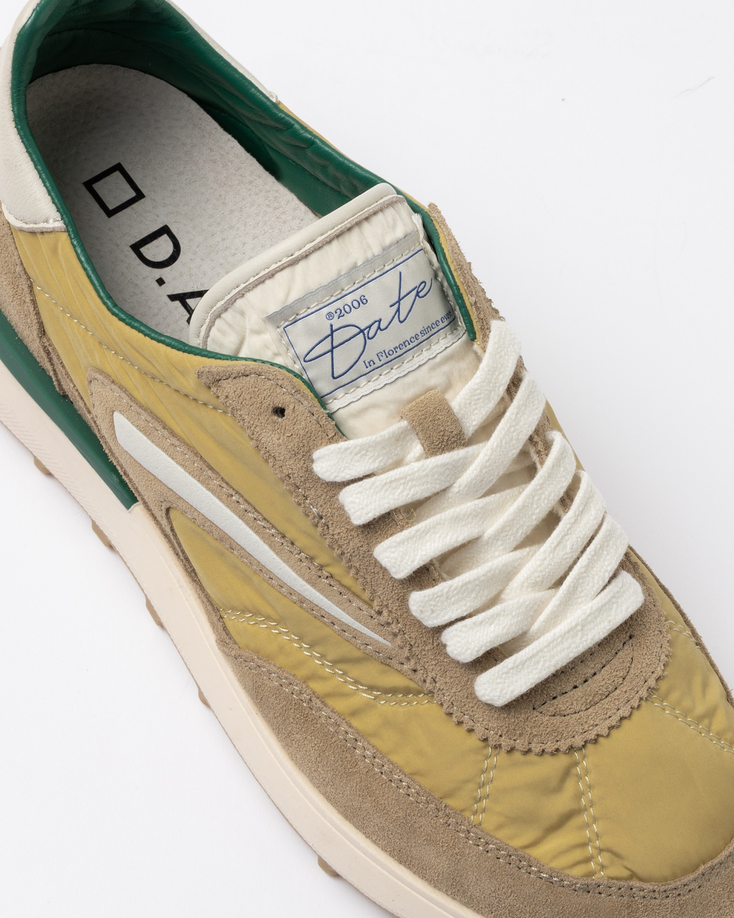 • La label con scritta D.A.T.E. è cucita sulla linguetta in nylon.