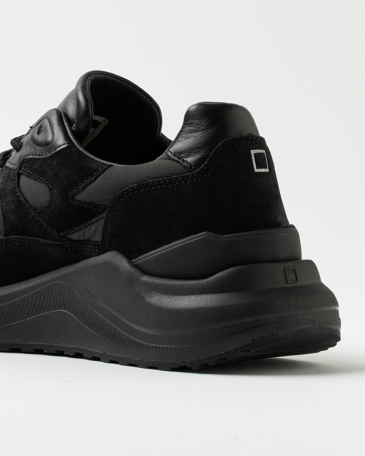 Dettagli in nabuk avorio e pelle lucida colore nero.