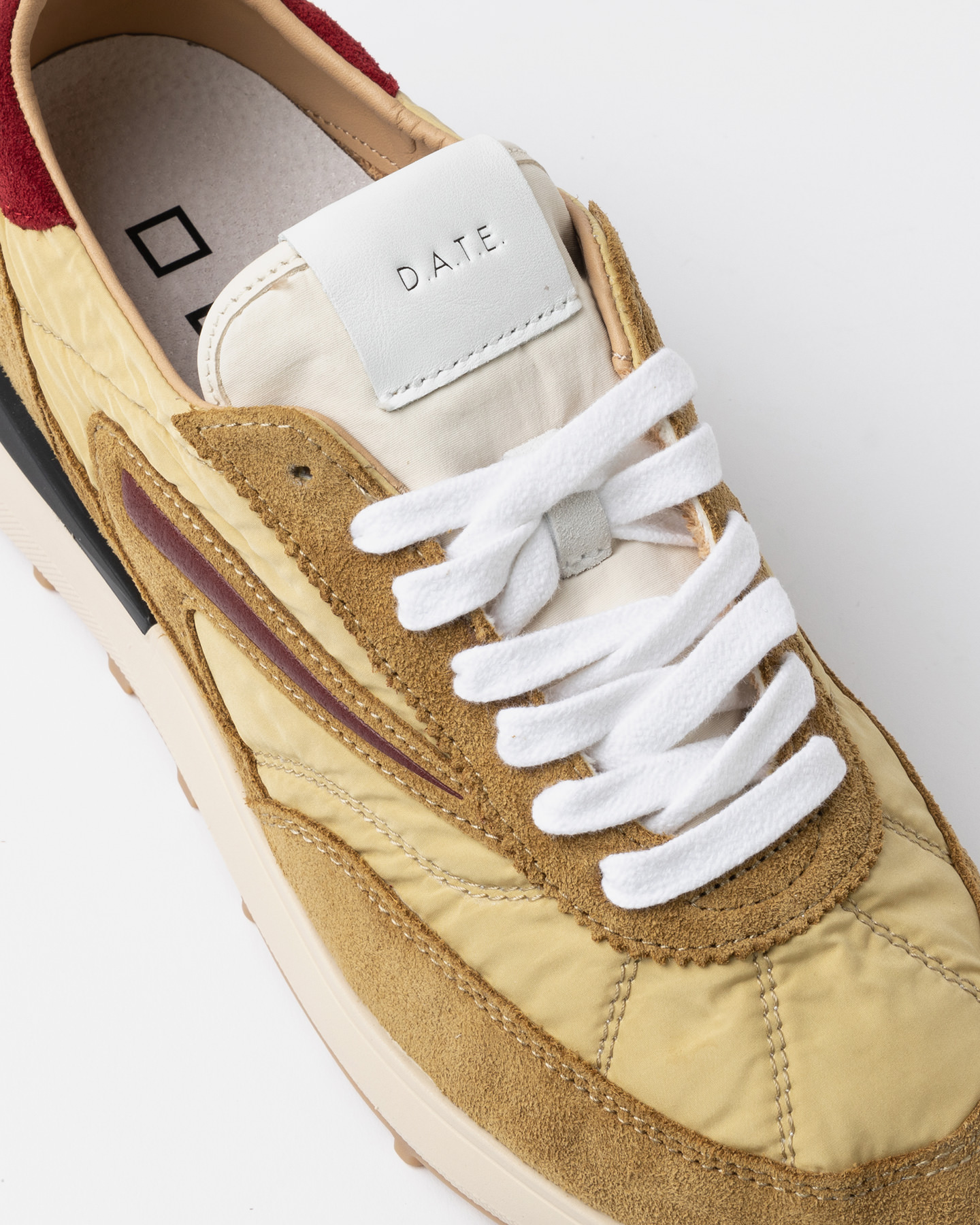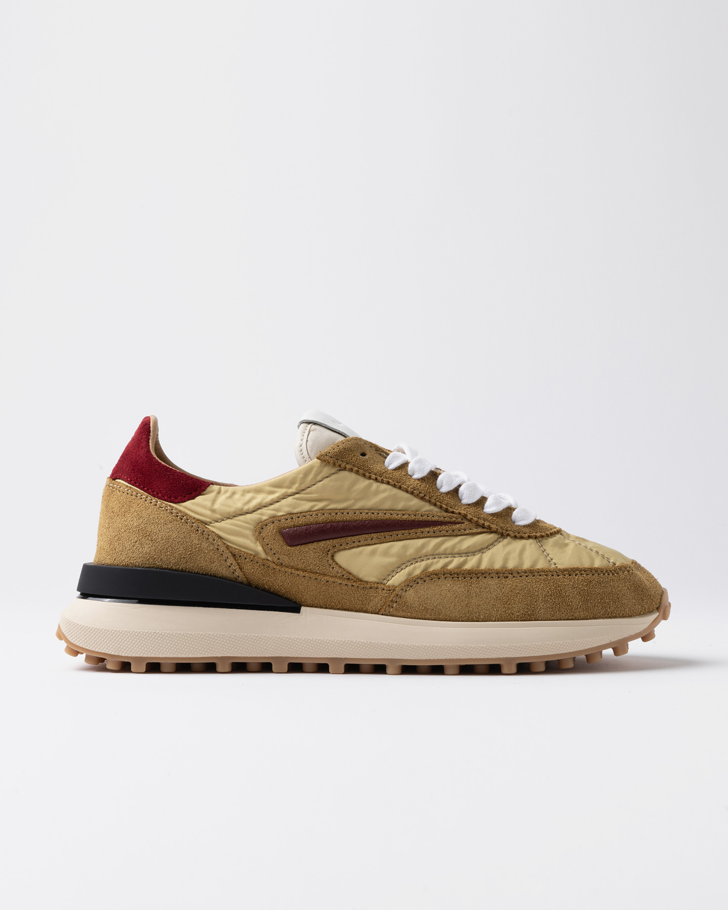 Running sneakers in nylon color sabbia e suede colore senape.