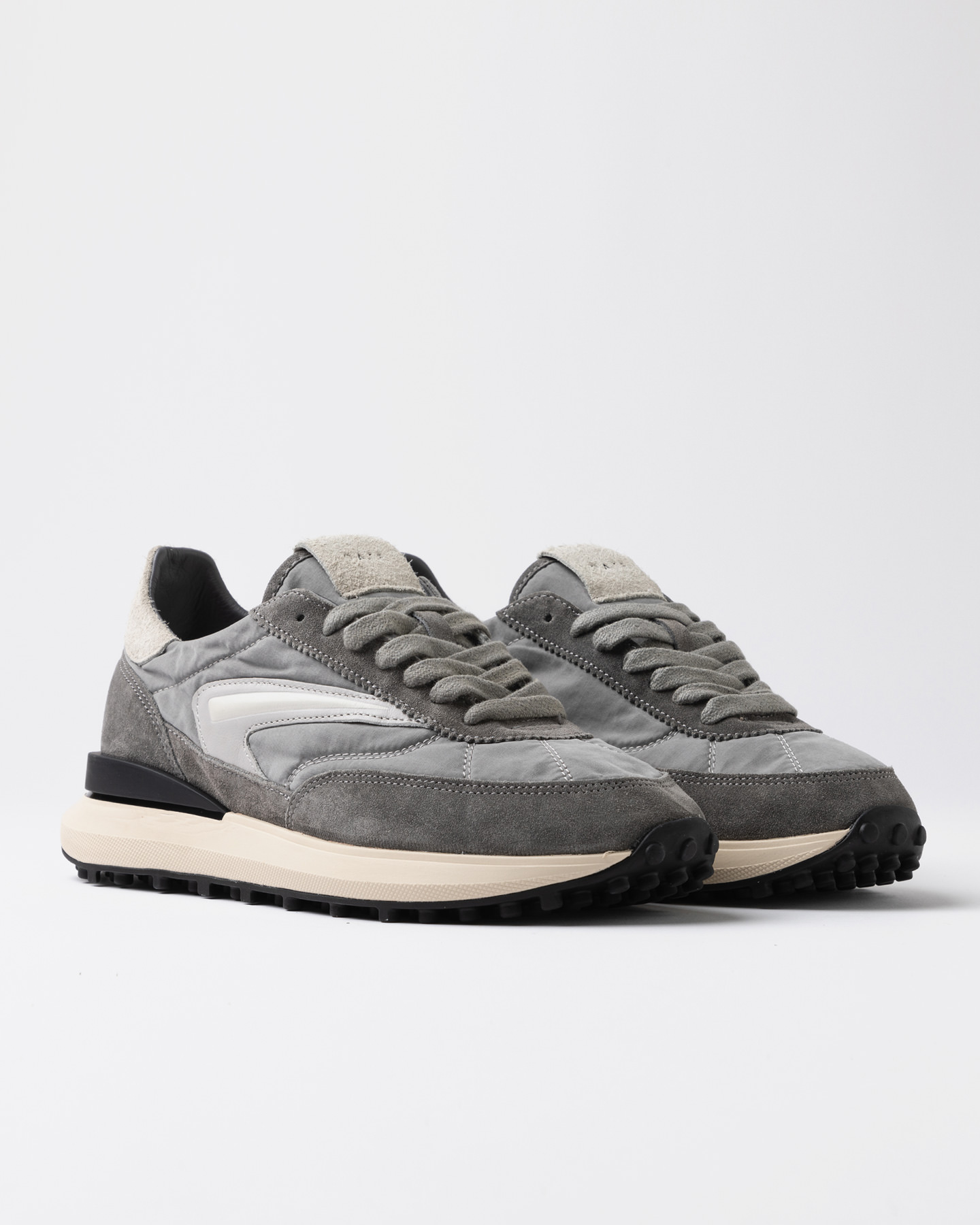Sneakers bassa in nylon e suede colore grigio.